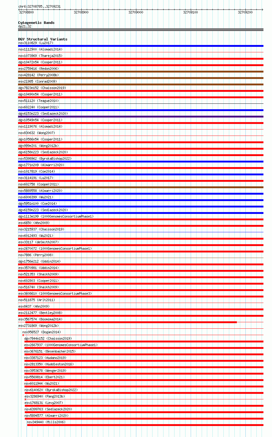 Variant DetailsVariant: essv6974759| Internal ID | 10083187 | | Landmark | | | Location Information | | | Cytoband | 6p21.32 | | Allele length | | Assembly | Allele length | | hg38 | 447 | | hg19 | 447 |