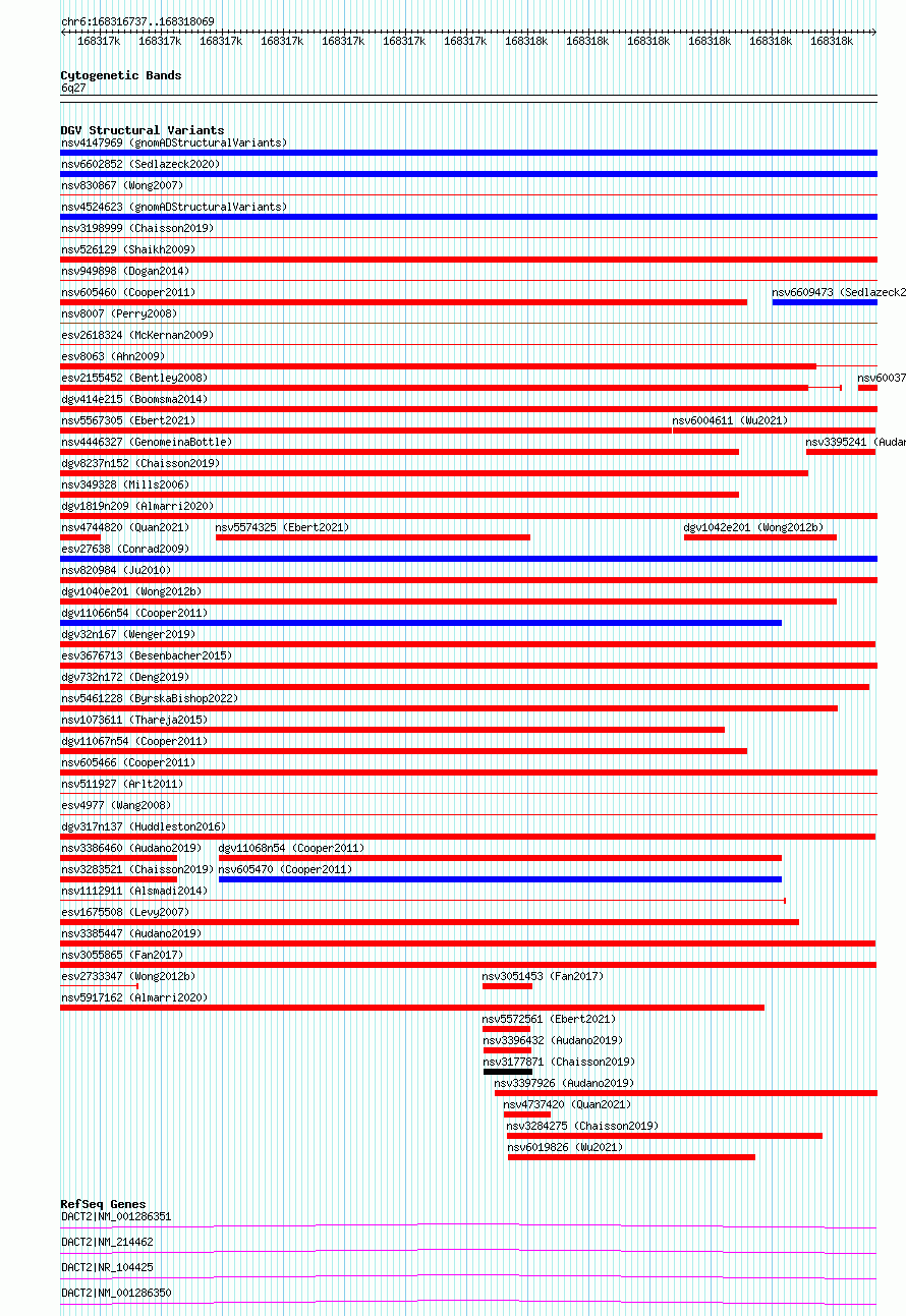 Variant DetailsVariant: essv6975055| Internal ID | 10082921 | | Landmark | | | Location Information | | | Cytoband | 6q27 | | Allele length | | Assembly | Allele length | | hg38 | 1333 | | hg19 | 1333 |