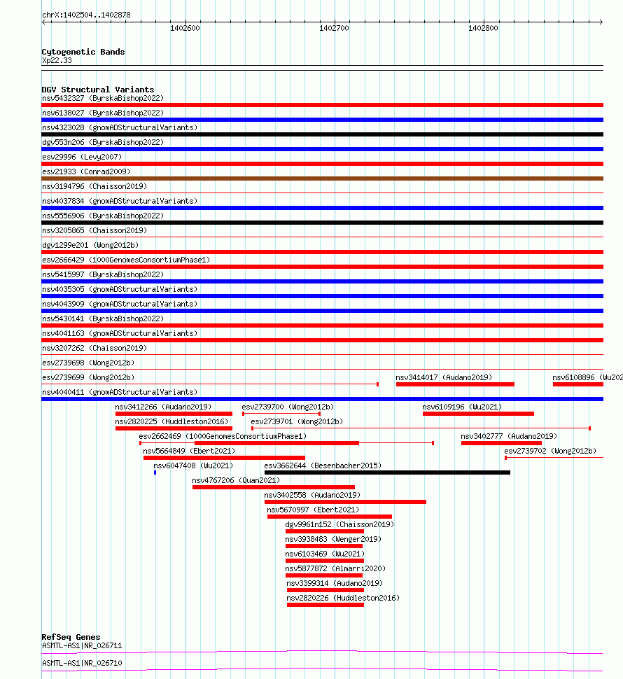 Variant DetailsVariant: essv6975619| Internal ID | 10082413 | | Landmark | | | Location Information | | | Cytoband | Xp22.33 | | Allele length | | Assembly | Allele length | | hg38 | 375 | | hg19 | 375 |