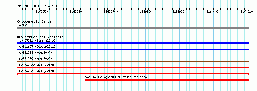 Variant DetailsVariant: essv6976002Internal ID | 9735382 | Landmark | | Location Information | | Cytoband | 8q21.13 | Allele length | Assembly | Allele length | hg38 | 676 | hg19 | 676 |
