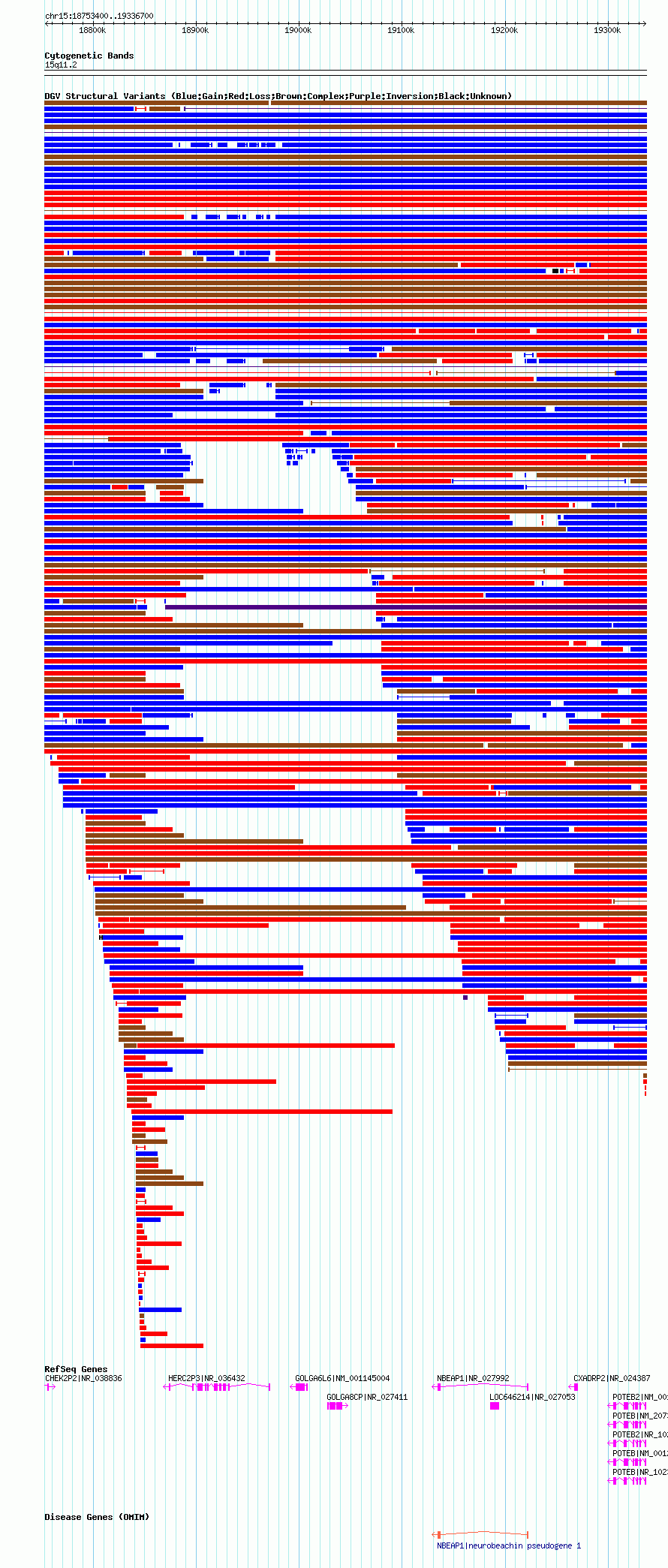 Variant DetailsVariant: essv6978072| Internal ID | 12978590 | | Landmark | | | Location Information | | | Cytoband | 15q11.1 | | Allele length | | Assembly | Allele length | | hg38 | 578549 | | hg19 | 578625 | | hg18 | 583301 | | hg17 | 583301 |