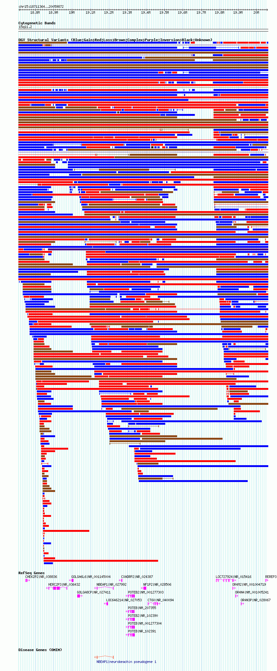 Variant DetailsVariant: essv6978486| Internal ID | 12982057 | | Landmark | | | Location Information | | | Cytoband | 15q11.1 | | Allele length | | Assembly | Allele length | | hg38 | 2024461 | | hg19 | 2107159 | | hg18 | 1348509 | | hg17 | 1348509 |