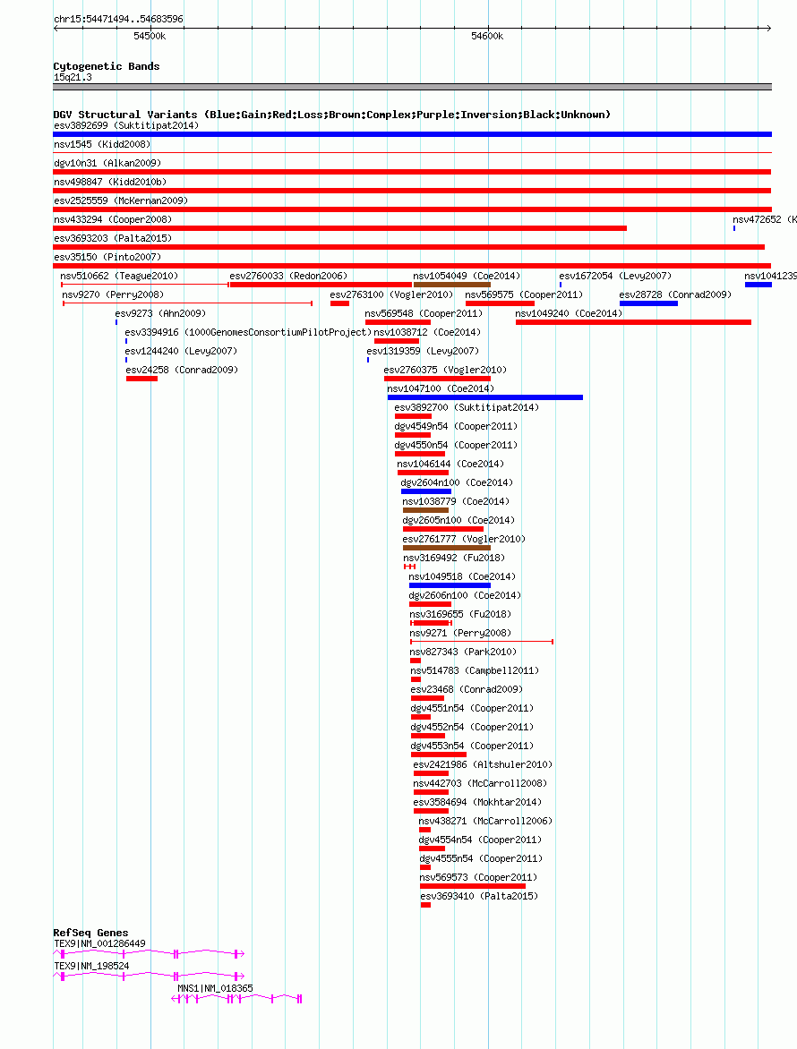 | | Variant Type | CNV loss | | Copy Number | | | Allele State | | | Allele Origin | | | Probe Count | | | Validation Flag | | | Merged Status | S | | Merged Variants | esv35150 | | Supporting Variants | | | Samples | NA18507 | | Known Genes | MNS1, TEX9 | | Method | SNP array | | Analysis | | | Platform | Affymetrix Mapping 250K Nsp SNP Array | | Comments | | | Reference | Pinto_et_al_2007 | | Pubmed ID | 17911159 | | Accession Number(s) | essv6979211