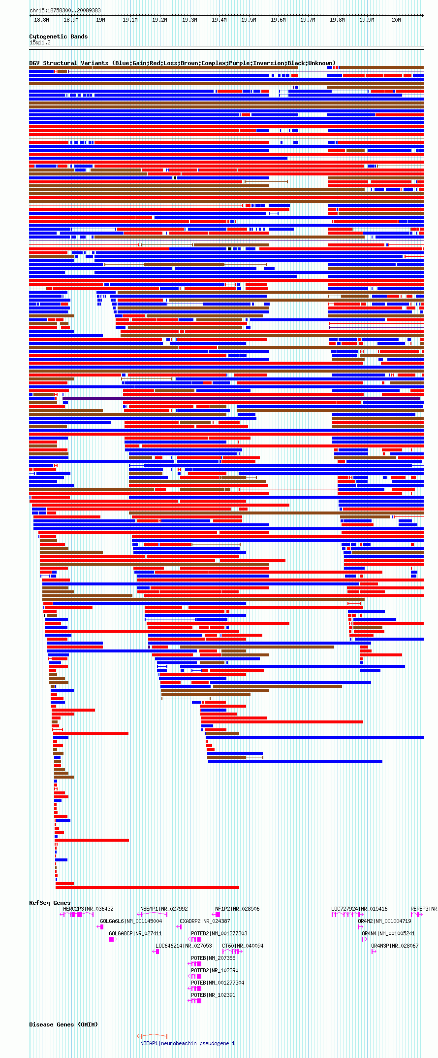 | | Variant Type | CNV loss | | Copy Number | | | Allele State | | | Allele Origin | | | Probe Count | | | Validation Flag | | | Merged Status | S | | Merged Variants | esv2751485 | | Supporting Variants | | | Samples | NA18872 | | Known Genes | CT60, CXADRP2, GOLGA6L6, GOLGA8CP, HERC2P3, LOC646214, LOC727924, NBEAP1, NF1P2, OR4M2, OR4N3P, OR4N4, POTEB, POTEB2, REREP3 | | Method | SNP array | | Analysis | | | Platform | Affymetrix Mapping 250K Nsp SNP Array | | Comments | | | Reference | Pinto_et_al_2007 | | Pubmed ID | 17911159 | | Accession Number(s) | essv6979983