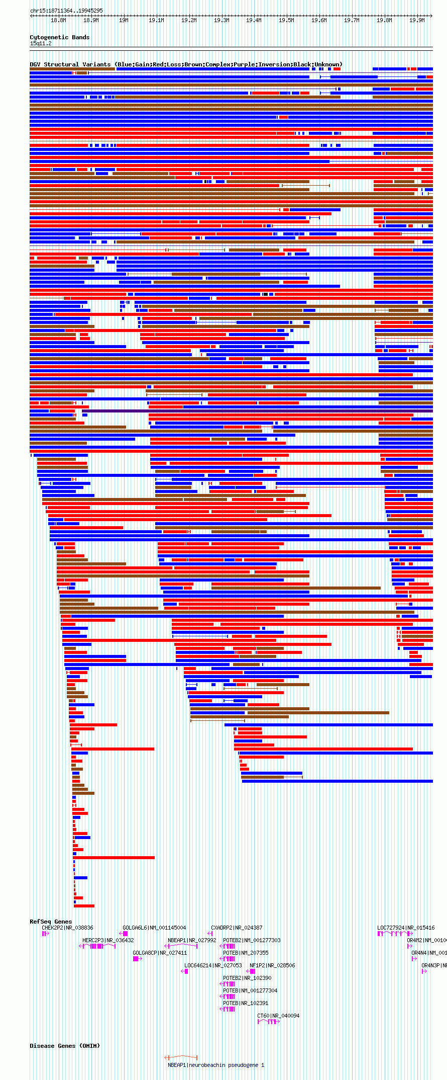 Variant DetailsVariant: essv6980233| Internal ID | 12981487 | | Landmark | | | Location Information | | | Cytoband | 15q11.1 | | Allele length | | Assembly | Allele length | | hg38 | 1909884 | | hg19 | 1992582 | | hg18 | 1233932 | | hg17 | 1233932 |