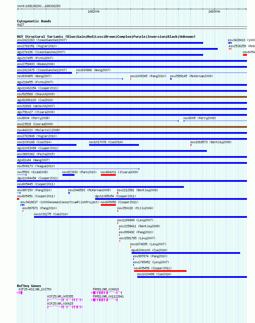 | | Variant Type | CNV gain | | Copy Number | | | Allele State | | | Allele Origin | | | Probe Count | | | Validation Flag | | | Merged Status | S | | Merged Variants | esv35125 | | Supporting Variants | | | Samples | NA06985 | | Known Genes | FRMD1, KIF25, KIF25-AS1 | | Method | SNP array | | Analysis | | | Platform | Affymetrix Mapping 250K Nsp SNP Array | | Comments | | | Reference | Pinto_et_al_2007 | | Pubmed ID | 17911159 | | Accession Number(s) | essv6980247