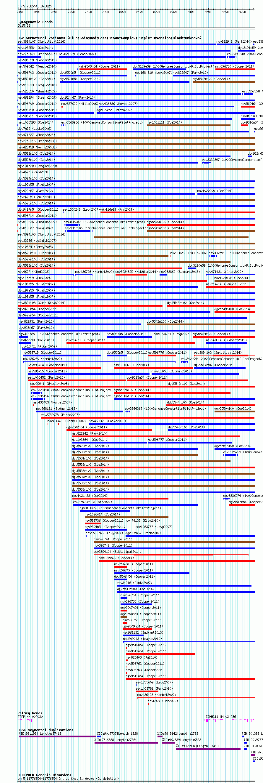 Variant DetailsVariant: essv6980494| Internal ID | 12635821 | | Landmark | | | Location Information | | | Cytoband | 5p15.33 | | Allele length | | Assembly | Allele length | | hg38 | 138317 | | hg19 | 138317 | | hg18 | 138317 | | hg17 | 138317 |