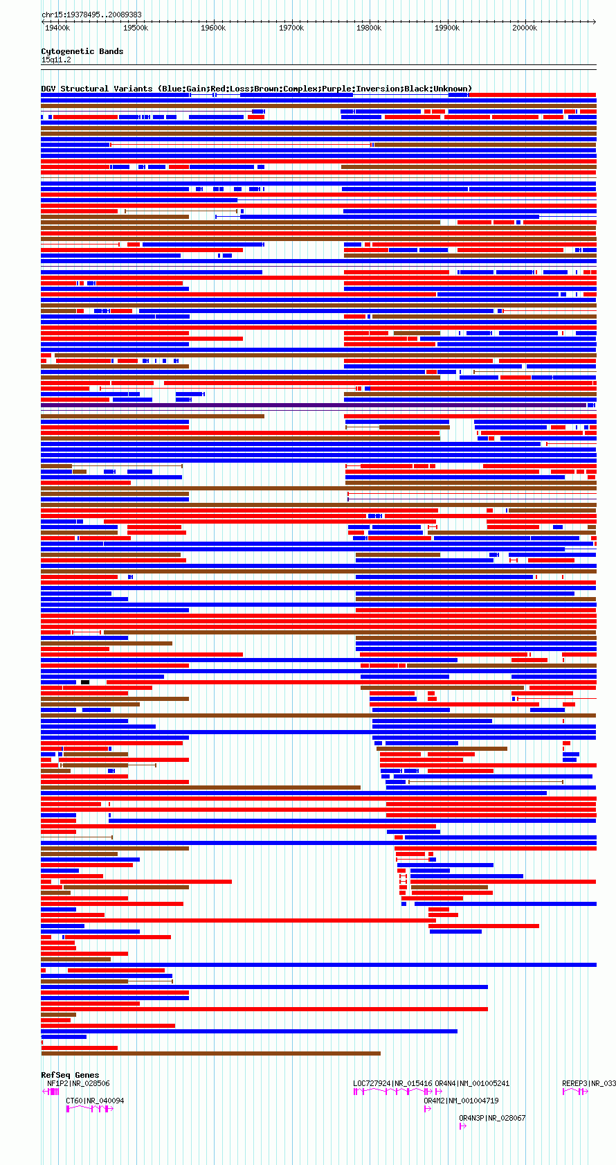 Variant DetailsVariant: essv6980982| Internal ID | 12982396 | | Landmark | | | Location Information | | | Cytoband | 15q11.2 | | Allele length | | Assembly | Allele length | | hg38 | 1391528 | | hg19 | 1474150 | | hg18 | 710889 | | hg17 | 710889 |