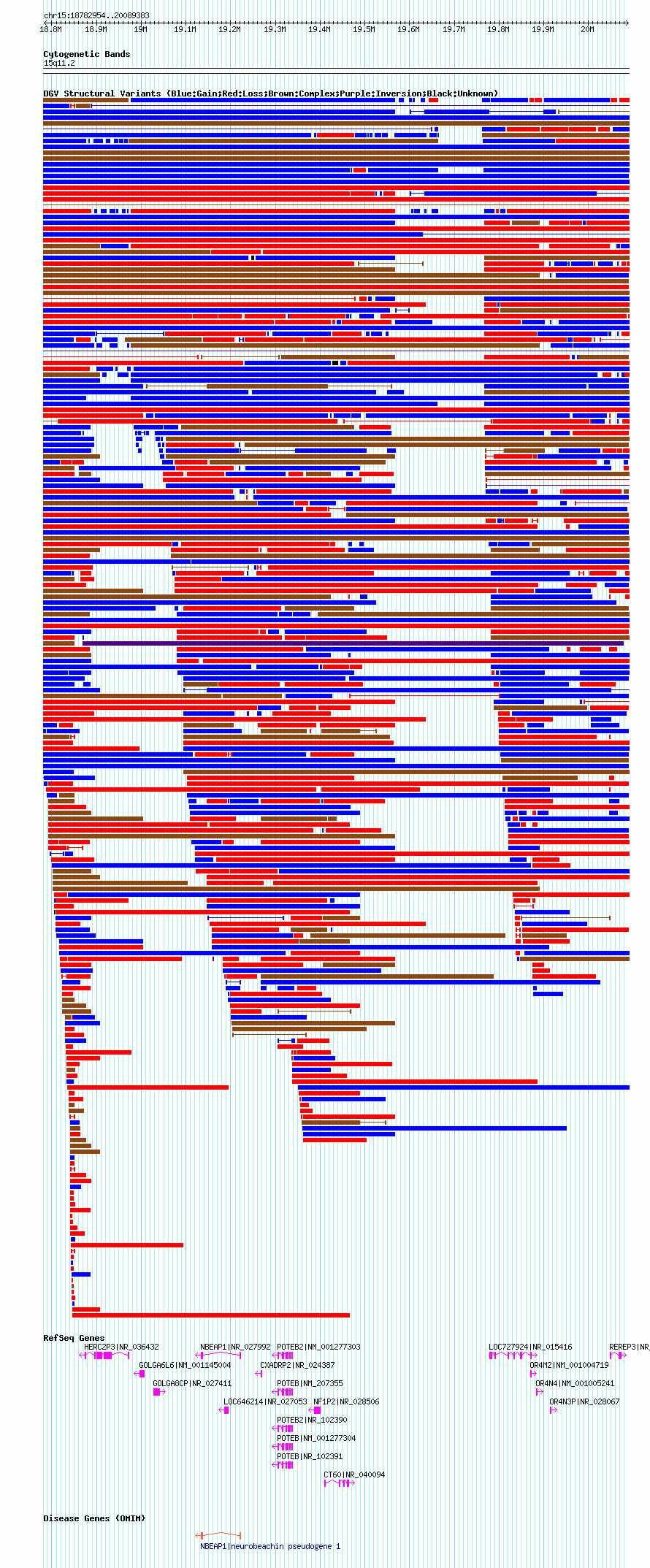 Variant DetailsVariant: essv6983272| Internal ID | 12975095 | | Landmark | | | Location Information | | | Cytoband | 15q11.1 | | Allele length | | Assembly | Allele length | | hg38 | 1982382 | | hg19 | 2065080 | | hg18 | 1306430 | | hg17 | 1306430 |