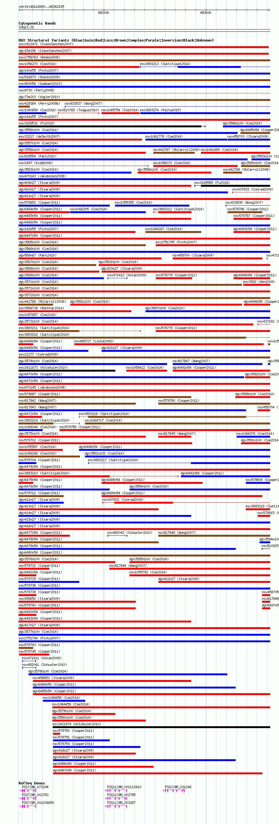 Variant DetailsVariant: essv6984276| Internal ID | 12976711 | | Landmark | | | Location Information | | | Cytoband | 19q13.31 | | Allele length | | Assembly | Allele length | | hg38 | 245546 | | hg19 | 245546 | | hg18 | 245546 | | hg17 | 245546 |