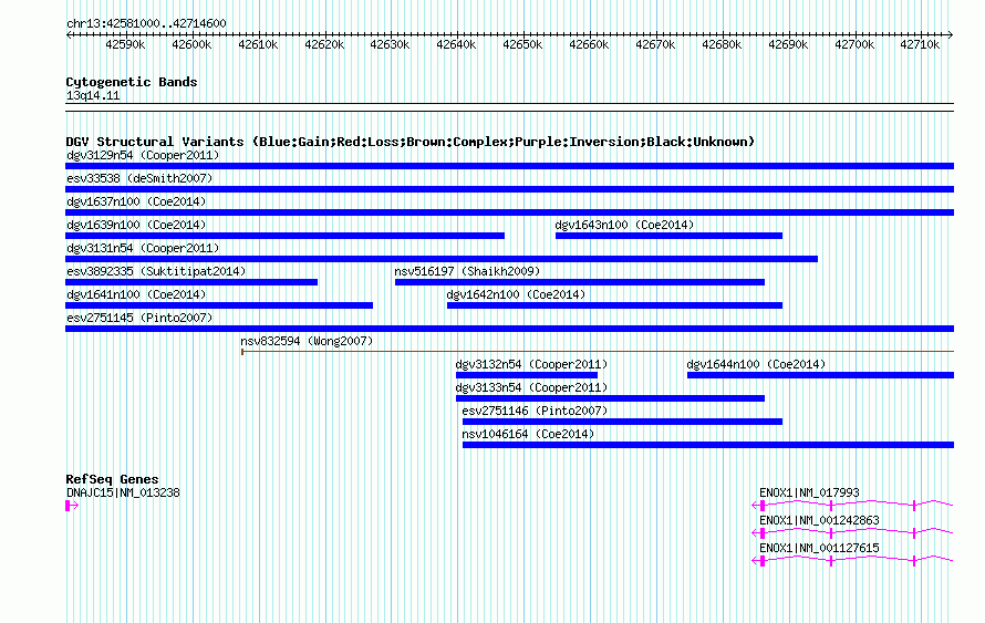 Variant DetailsVariant: essv6984531| Internal ID | 12630454 | | Landmark | | | Location Information | | | Cytoband | 13q14.11 | | Allele length | | Assembly | Allele length | | hg38 | 133601 | | hg19 | 133601 | | hg18 | 133601 | | hg17 | 133601 |
