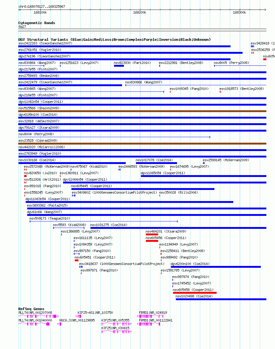 | Known Genes | FRMD1, HGC6.3, KIF25, KIF25-AS1, MLLT4 |