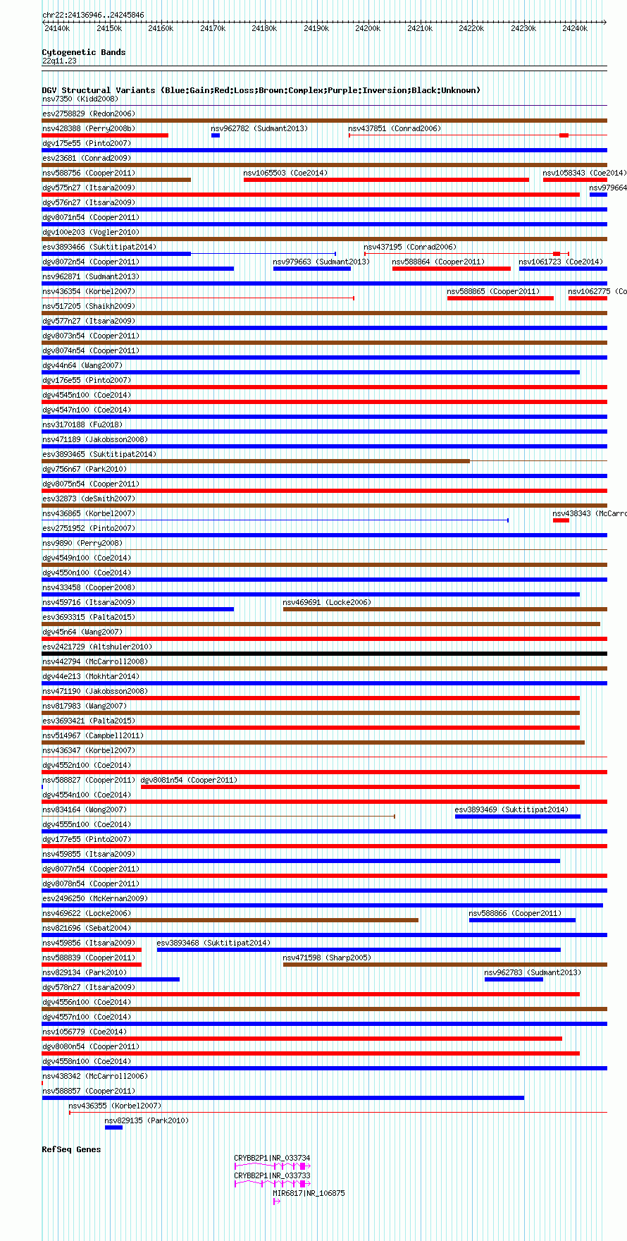 Variant DetailsVariant: essv6985363| Internal ID | 12983200 | | Landmark | | | Location Information | | | Cytoband | 22q11.23 | | Allele length | | Assembly | Allele length | | hg38 | 108901 | | hg19 | 108901 | | hg18 | 108901 | | hg17 | 108901 |