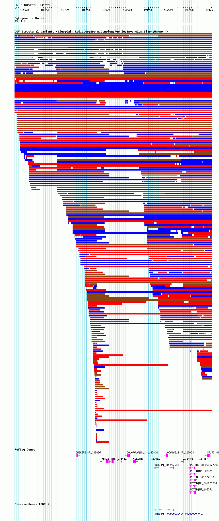 Variant DetailsVariant: essv6985372| Internal ID | 12983224 | | Landmark | | | Location Information | | | Cytoband | 15q11.1 | | Allele length | | Assembly | Allele length | | hg38 | 951154 | | hg19 | 951230 | | hg18 | 955875 | | hg17 | 955875 |