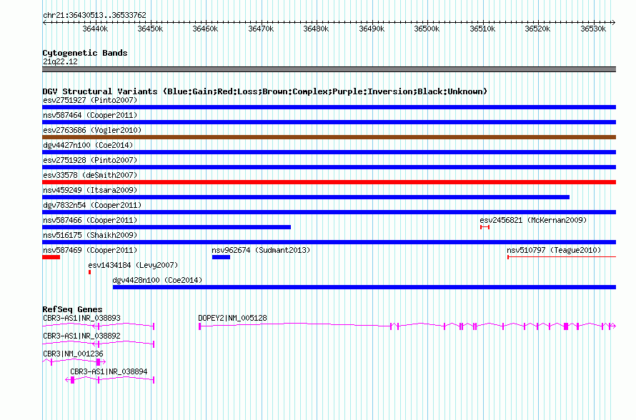| | Variant Type | CNV gain | | Copy Number | | | Allele State | | | Allele Origin | | | Probe Count | | | Validation Flag | | | Merged Status | S | | Merged Variants | esv2751928 | | Supporting Variants | | | Samples | SPC_86 | | Known Genes | CBR3, CBR3-AS1, DOPEY2 | | Method | SNP array | | Analysis | | | Platform | Affymetrix Mapping 250K Sty2 SNP Array | | Comments | | | Reference | Pinto_et_al_2007 | | Pubmed ID | 17911159 | | Accession Number(s) | essv6985934