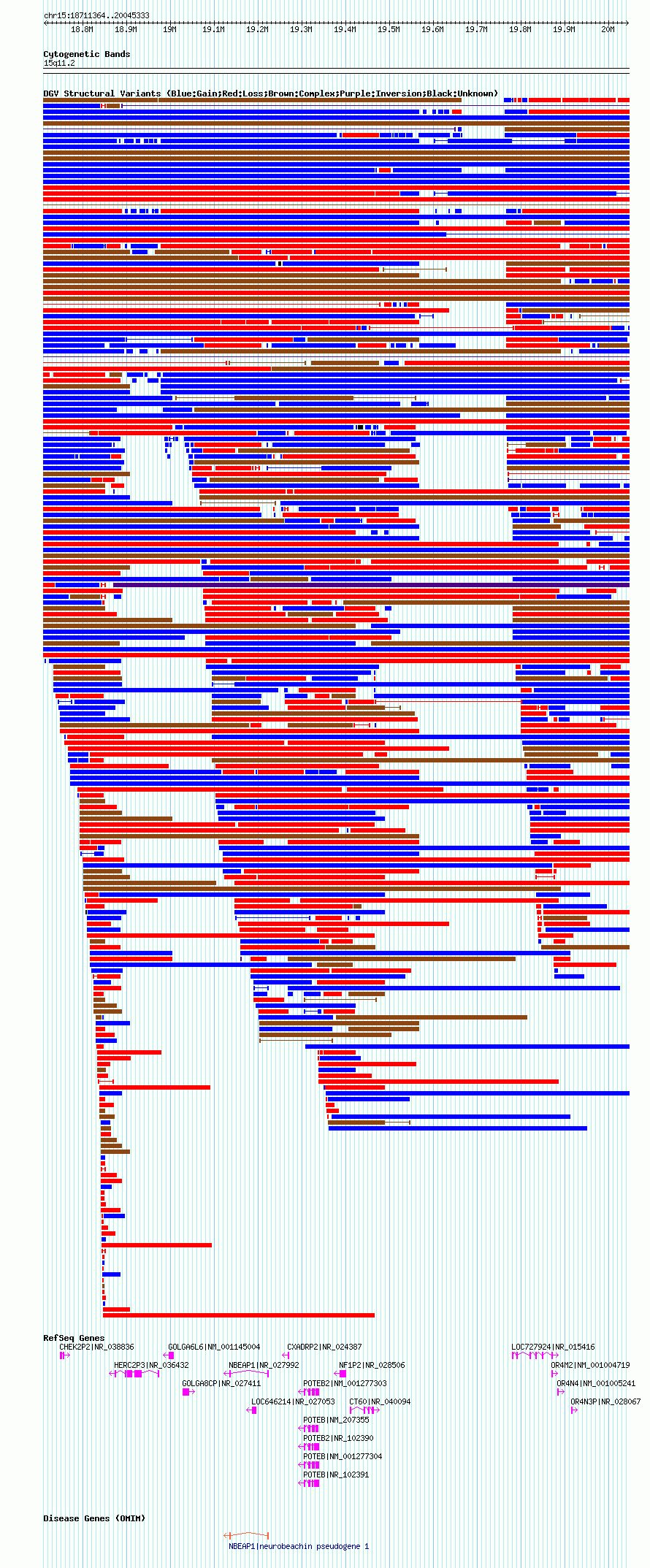 Variant DetailsVariant: essv6987343| Internal ID | 12981554 | | Landmark | | | Location Information | | | Cytoband | 15q11.1 | | Allele length | | Assembly | Allele length | | hg38 | 2009922 | | hg19 | 2092620 | | hg18 | 1333970 | | hg17 | 1333970 |