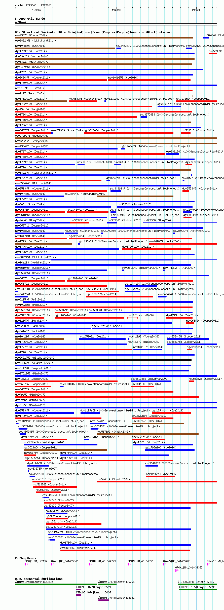 Variant DetailsVariant: essv6987434| Internal ID | 12629337 | | Landmark | | | Location Information | | | Cytoband | 14q11.2 | | Allele length | | Assembly | Allele length | | hg38 | 252101 | | hg19 | 252101 | | hg18 | 252101 | | hg17 | 252101 |