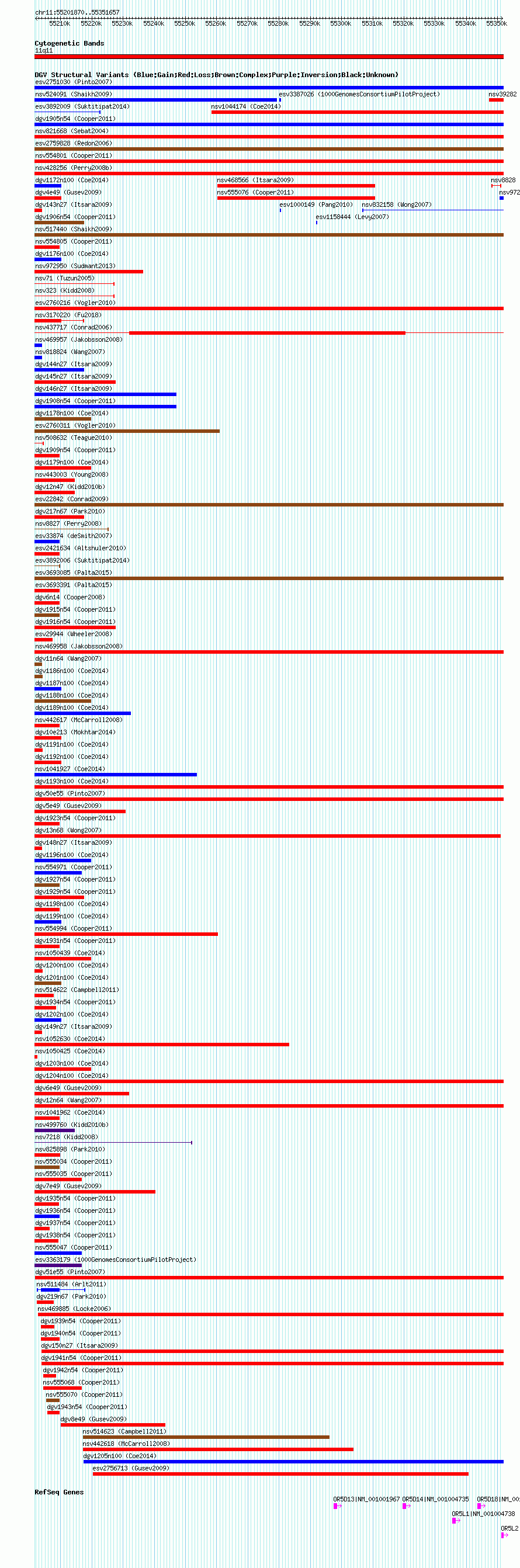 Variant DetailsVariant: essv6987815| Internal ID | 12982676 | | Landmark | | | Location Information | | | Cytoband | 11q11 | | Allele length | | Assembly | Allele length | | hg38 | 149788 | | hg19 | 149788 | | hg18 | 149788 | | hg17 | 149788 |