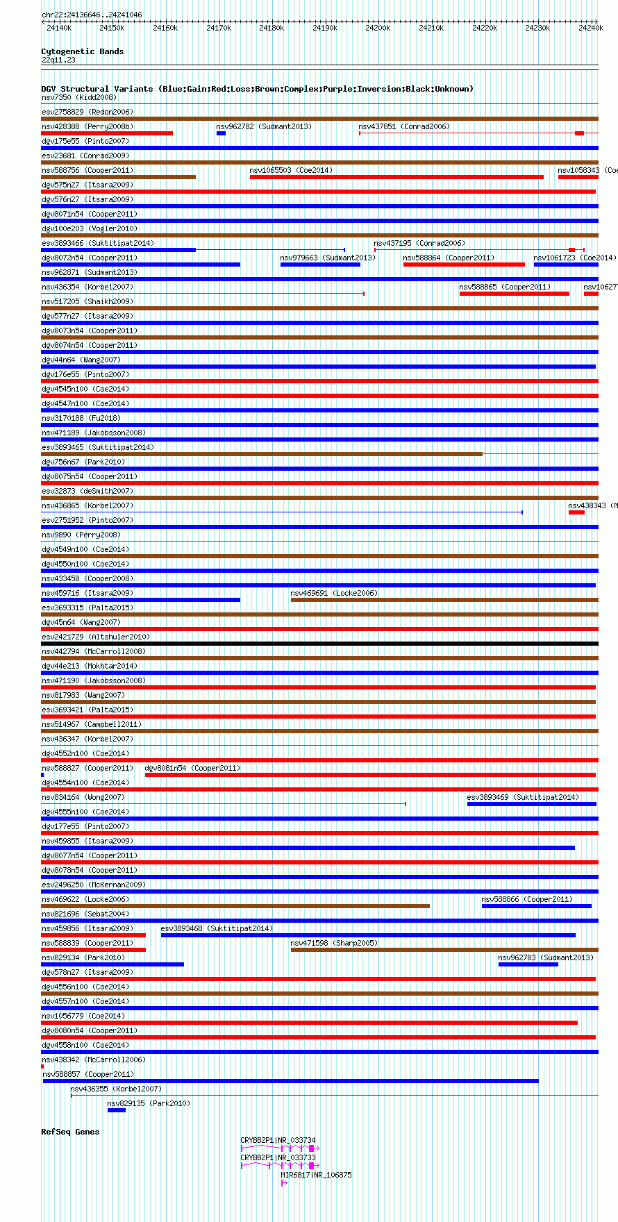 Variant DetailsVariant: essv6989046| Internal ID | 12979143 | | Landmark | | | Location Information | | | Cytoband | 22q11.23 | | Allele length | | Assembly | Allele length | | hg38 | 104401 | | hg19 | 104401 | | hg18 | 104401 | | hg17 | 104401 |