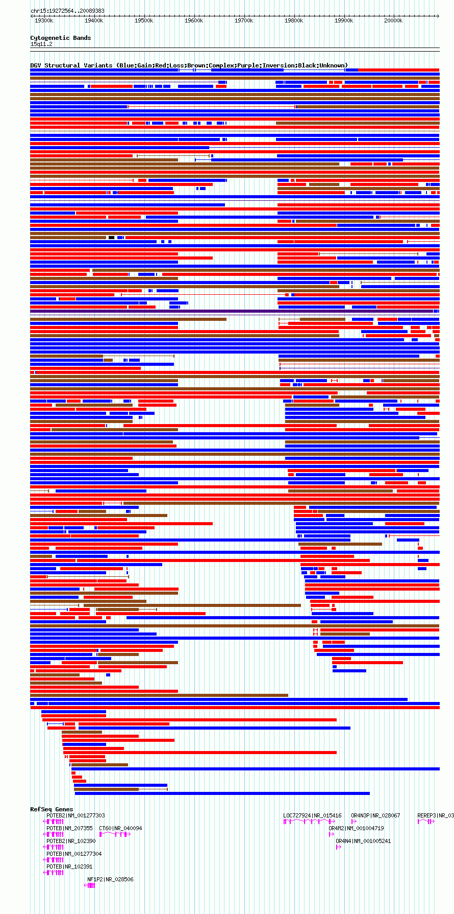 Variant DetailsVariant: essv6989103| Internal ID | 12980399 | | Landmark | | | Location Information | | | Cytoband | 15q11.2 | | Allele length | | Assembly | Allele length | | hg38 | 1492874 | | hg19 | 1575496 | | hg18 | 816820 | | hg17 | 816820 |