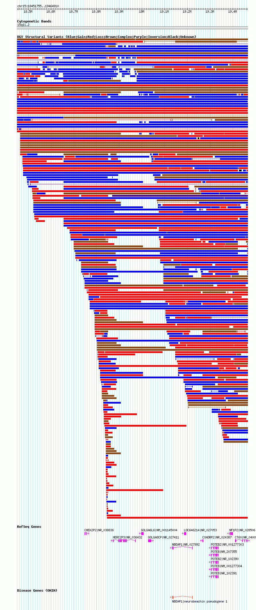 Variant DetailsVariant: essv6990249| Internal ID | 12978716 | | Landmark | | | Location Information | | | Cytoband | 15q11.1 | | Allele length | | Assembly | Allele length | | hg38 | 1008435 | | hg19 | 1008511 | | hg18 | 1013156 | | hg17 | 1013156 |