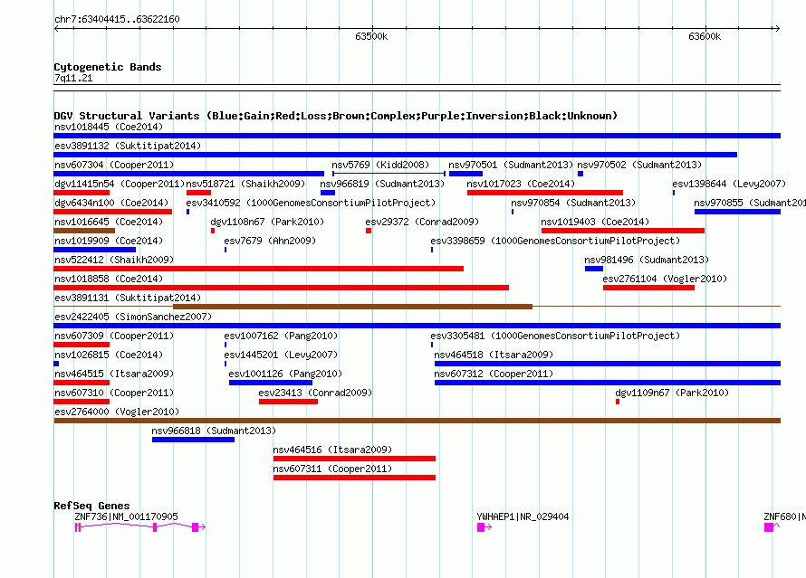 Variant DetailsVariant: essv6990863| Internal ID | 10360092 | | Landmark | | | Location Information | | | Cytoband | 7q11.21 | | Allele length | | Assembly | Allele length | | hg38 | 217746 | | hg19 | 217746 | | hg18 | 217746 |