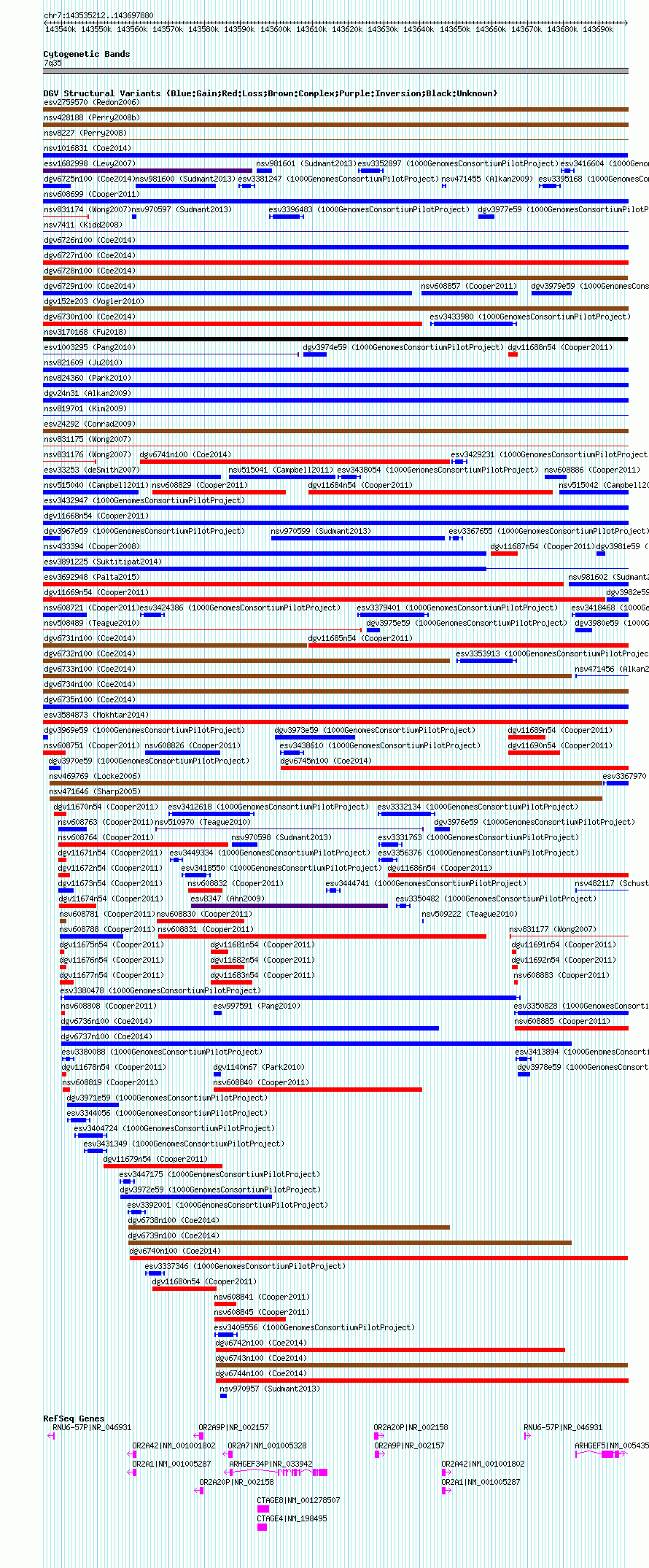 Variant DetailsVariant: essv6991906| Internal ID | 10368333 | | Landmark | | | Location Information | | | Cytoband | 7q35 | | Allele length | | Assembly | Allele length | | hg38 | 162669 | | hg19 | 162669 | | hg18 | 162669 |