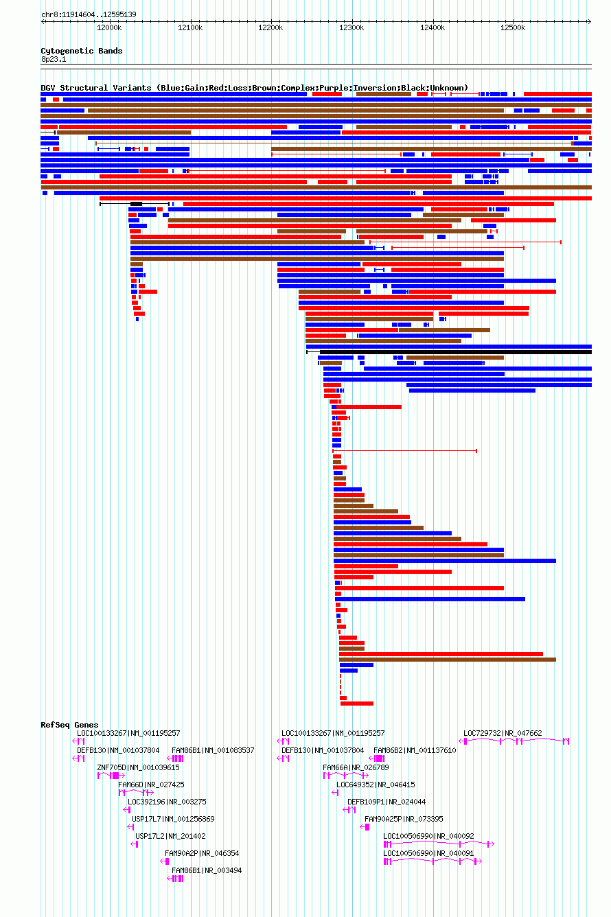 Variant DetailsVariant: essv6992419 | Internal ID | 10371836 | | Landmark | | | Location Information | | | Cytoband | 8p23.1 | | Allele length | | Assembly | Allele length | | hg38 | 673574 | | hg19 | 673574 | | hg18 | 680536 |