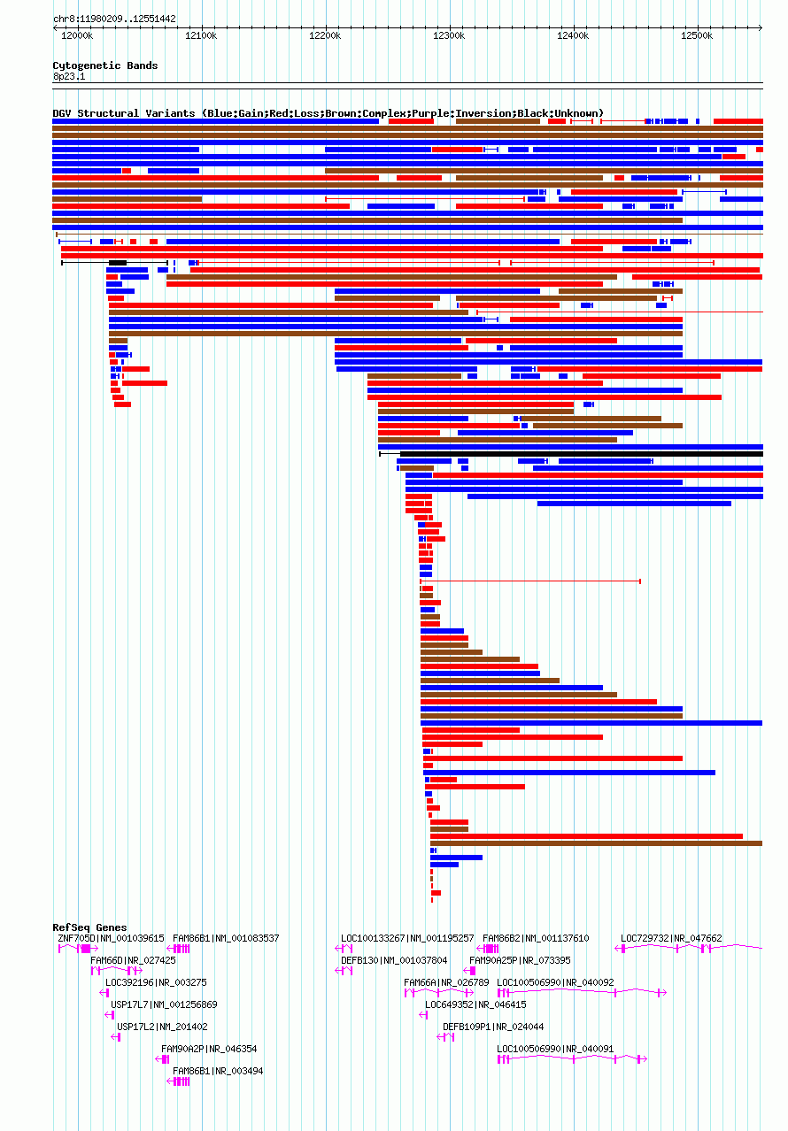 Variant DetailsVariant: essv6992427 | Internal ID | 10355494 | | Landmark | | | Location Information | | | Cytoband | 8p23.1 | | Allele length | | Assembly | Allele length | | hg38 | 564272 | | hg19 | 564272 | | hg18 | 571234 |