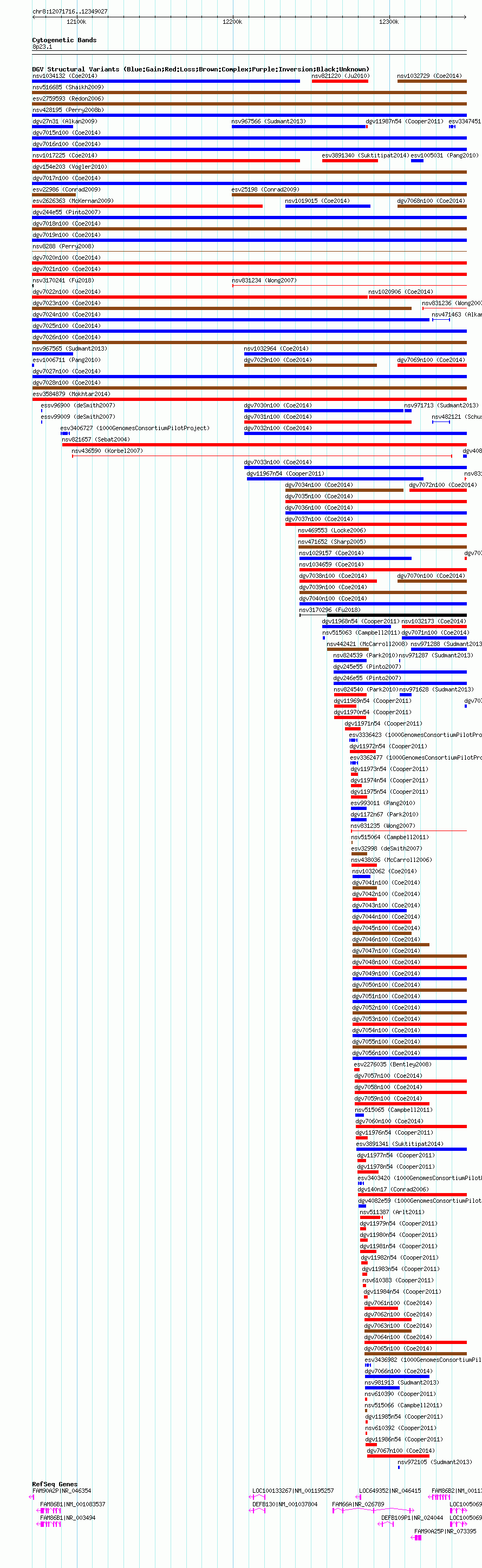 Variant DetailsVariant: essv6992499| Internal ID | 10368637 | | Landmark | | | Location Information | | | Cytoband | 8p23.1 | | Allele length | | Assembly | Allele length | | hg18 | 277312 |