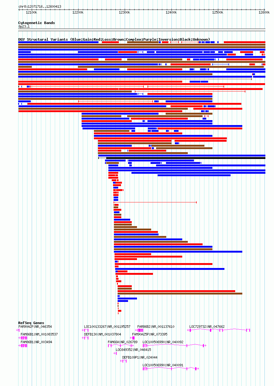 Variant DetailsVariant: essv6992505| Internal ID | 10371470 | | Landmark | | | Location Information | | | Cytoband | 8p23.1 | | Allele length | | Assembly | Allele length | | hg38 | 521736 | | hg19 | 521736 | | hg18 | 528698 |