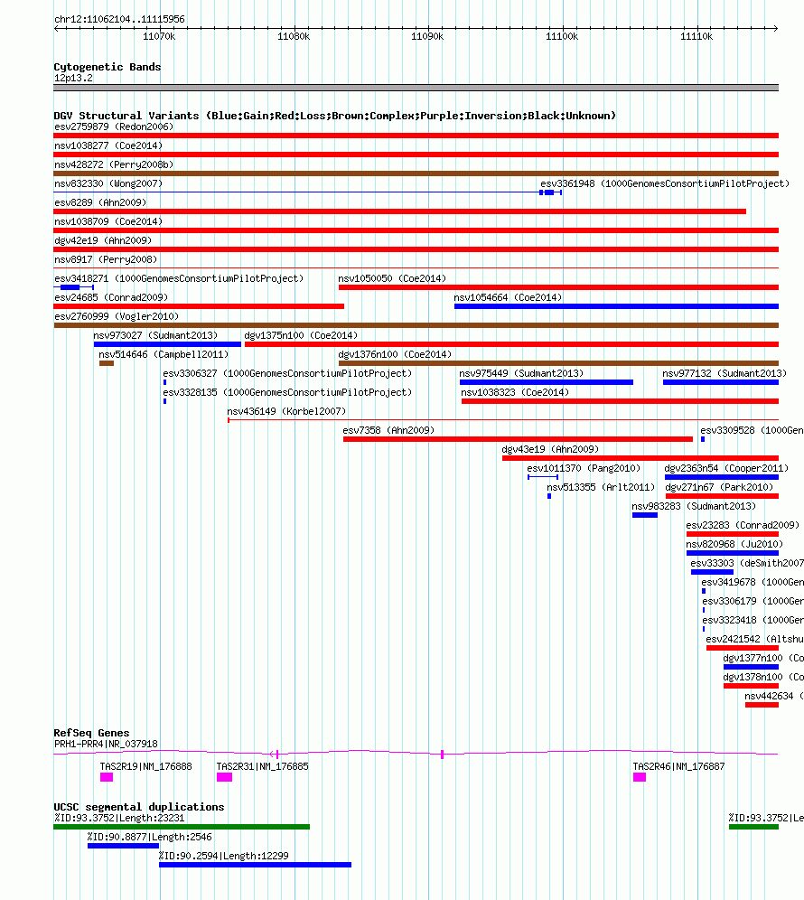 | Known Genes | PRH1-PRR4, TAS2R19, TAS2R31, TAS2R46 |