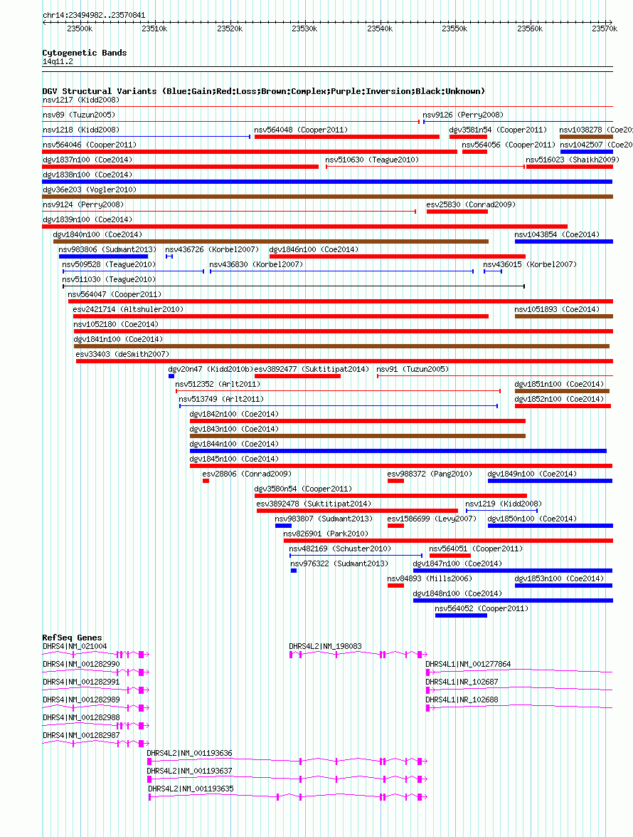 Variant DetailsVariant: essv6998448| Internal ID | 10367215 | | Landmark | | | Location Information | | | Cytoband | 14q11.2 | | Allele length | | Assembly | Allele length | | hg38 | 75860 | | hg19 | 75860 | | hg18 | 75860 |