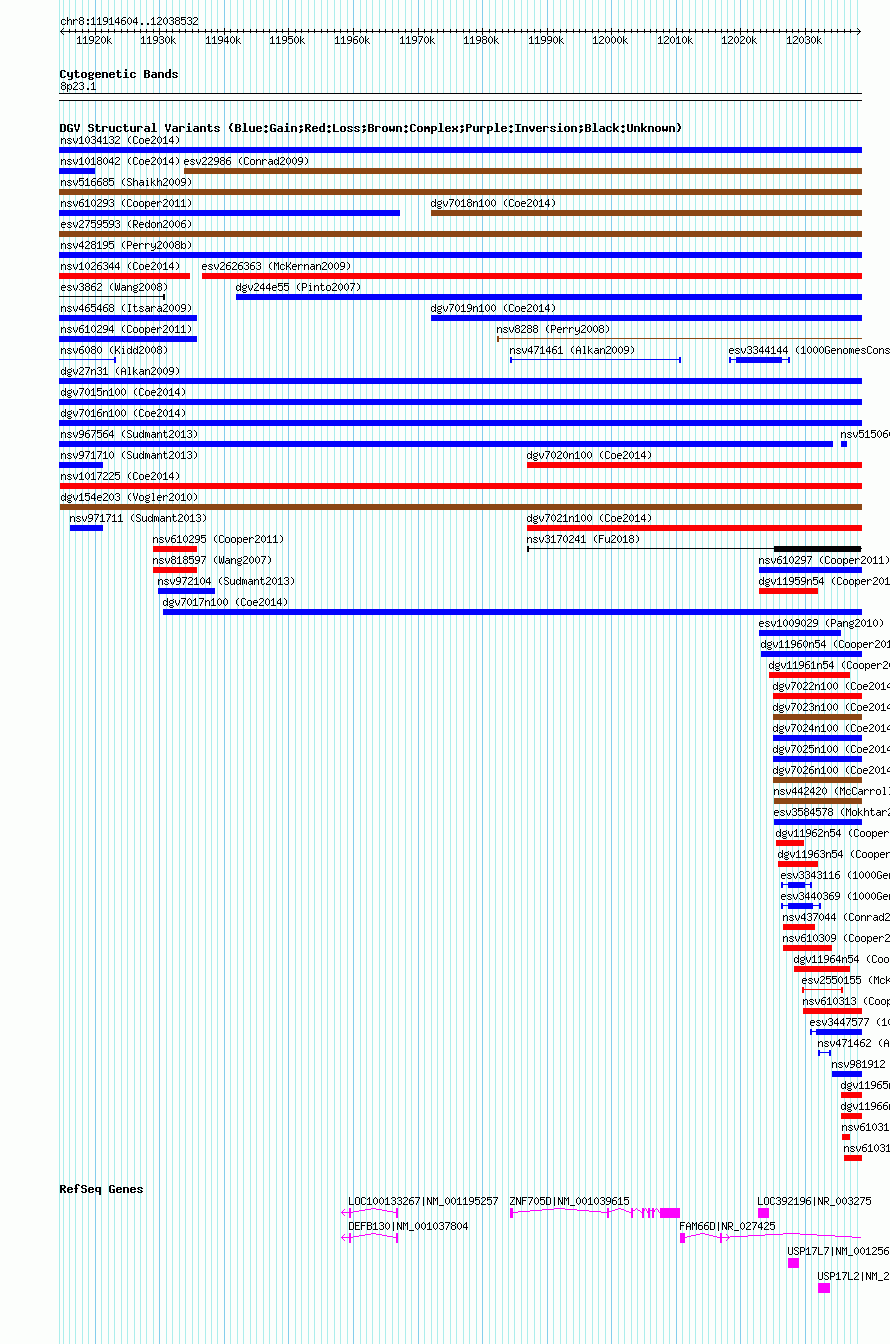 | Known Genes | DEFB130, FAM66D, LOC100133267, LOC392196, USP17L2, USP17L7, ZNF705D |