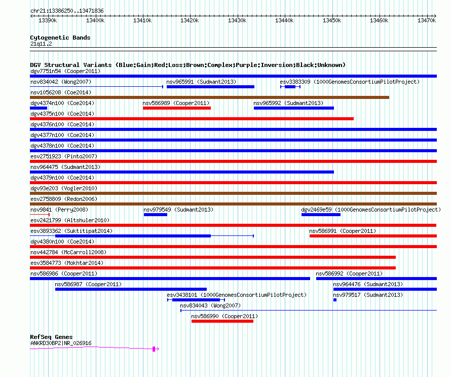 | Analysis | Two different algorithms (PennCNV and Birdseye) were applied to detect CNVs. Only congruent CNV events regarding direction of effect that were detected by both algorithms were merged using the outer borders of the event in a first step. In a second step only CNVs that were detected in at least two individuals were merged into a CNVR. |