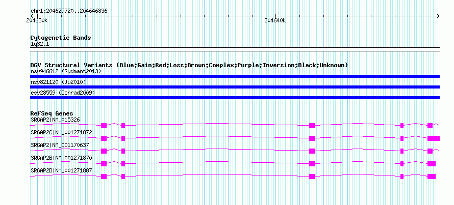 | Known Genes | SRGAP2, SRGAP2B, SRGAP2C, SRGAP2D |