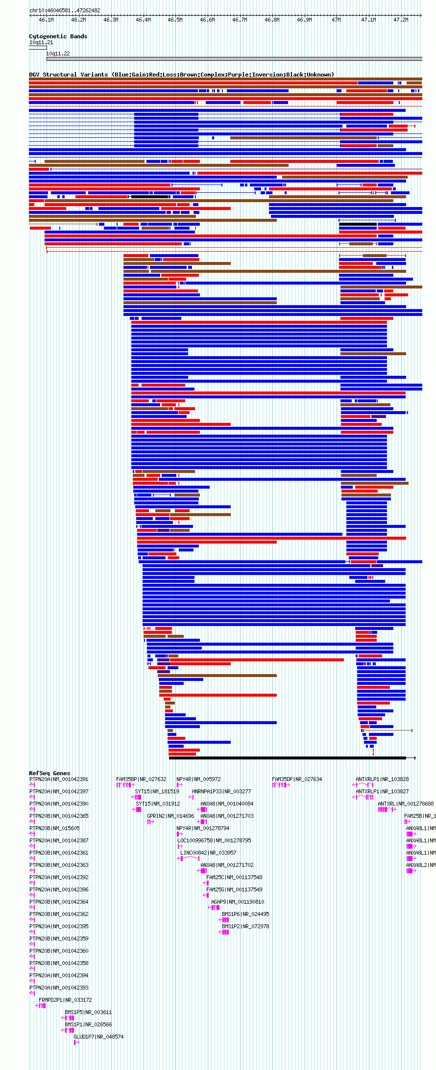 Variant DetailsVariant: essv7749| Internal ID | 9963388 | | Landmark | | | Location Information | | | Cytoband | 10q11.21 | | Allele length | | Assembly | Allele length | | hg19 | 1165902 | | hg18 | 1215902 | | hg17 | 1215902 |
