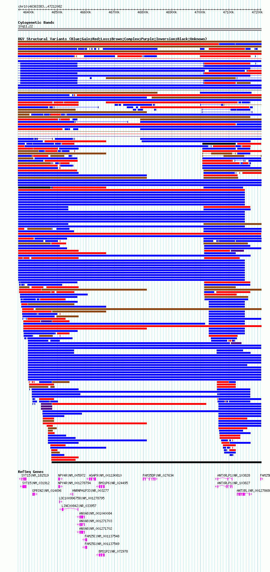 Variant DetailsVariant: essv7890 | Internal ID | 9975063 | | Landmark | | | Location Information | | | Cytoband | 10q11.22 | | Allele length | | Assembly | Allele length | | hg19 | 798700 | | hg18 | 848700 | | hg17 | 848700 |