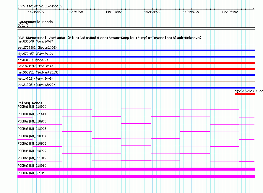 | Known Genes | PCDHA1, PCDHA2, PCDHA3, PCDHA4, PCDHA5, PCDHA6, PCDHA7 |