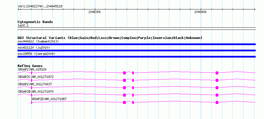 | Known Genes | SRGAP2, SRGAP2B, SRGAP2C, SRGAP2D |