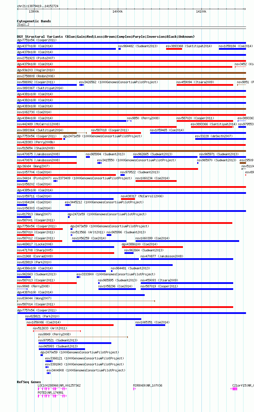 | Known Genes | C21orf15, LOC100288966, MIR8069, POTED |