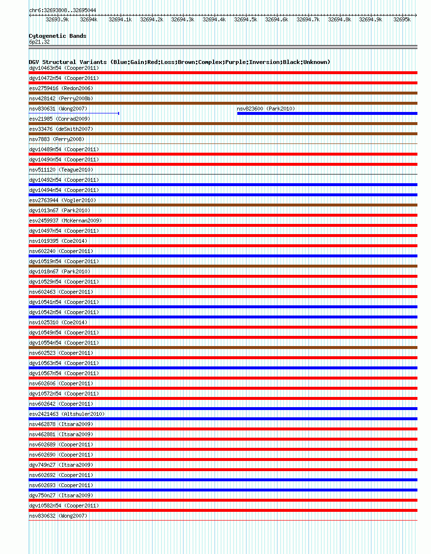 Outerchr6:32693808..32695044hg18UCSC Ensembl