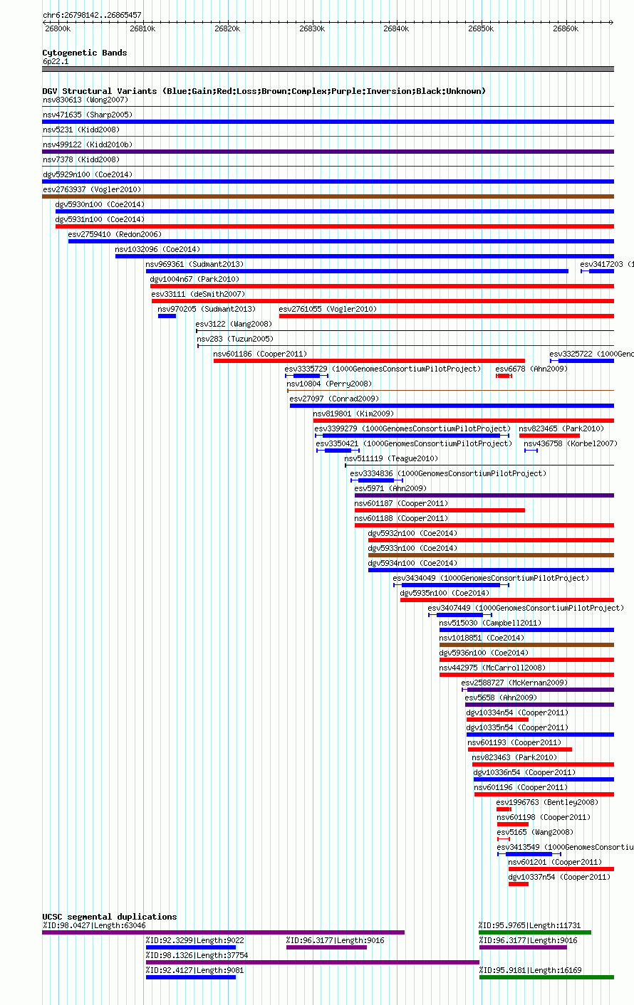 Outerchr6:26798142..26865457hg18UCSC Ensembl