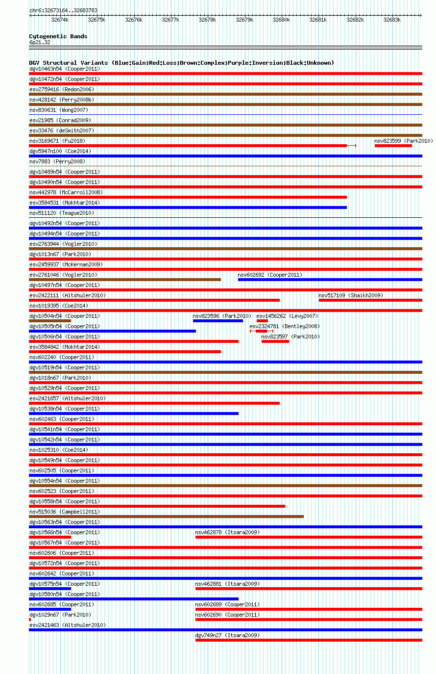 Innerchr6:32673283..32683594hg17UCSC Ensembl