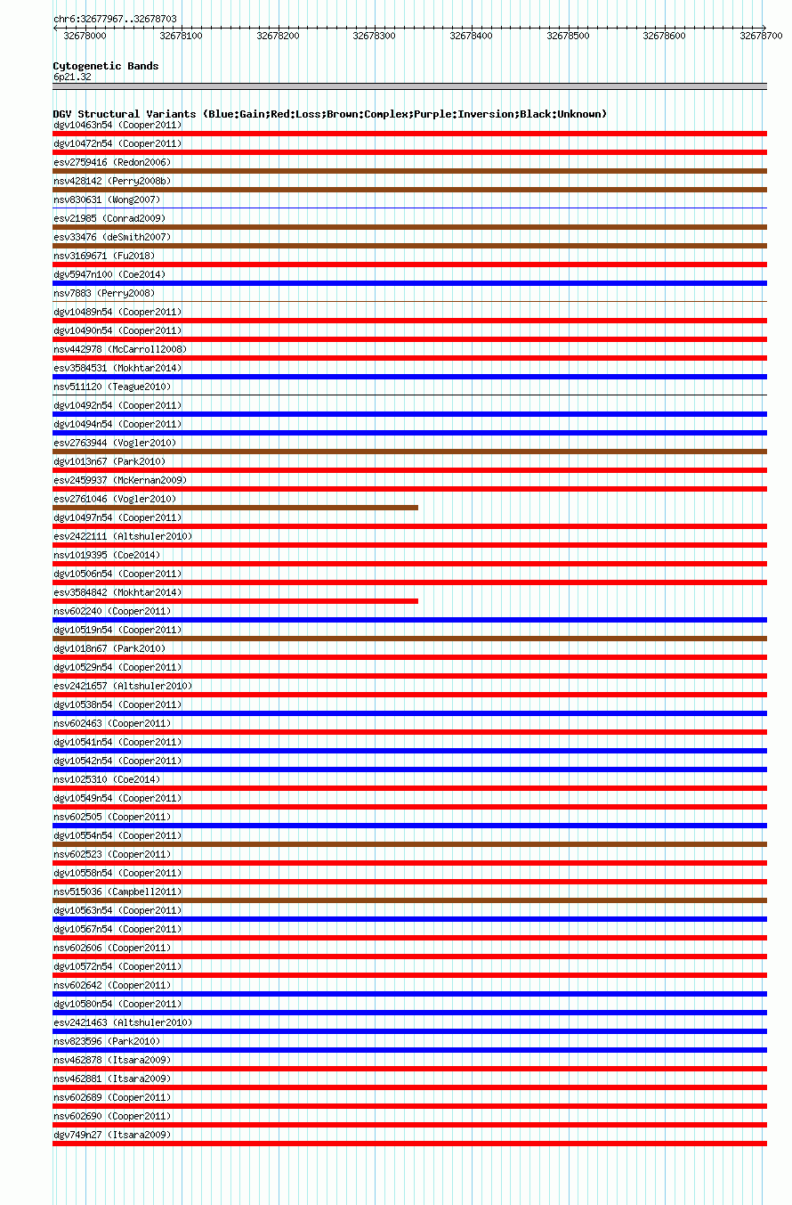 Outerchr6:32677967..32678703hg17UCSC Ensembl