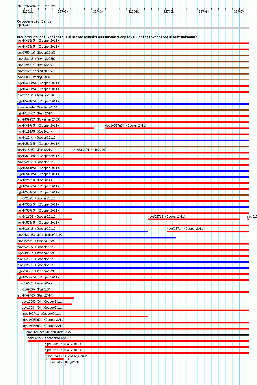 Outerchr6:32700702..32707250hg17UCSC Ensembl