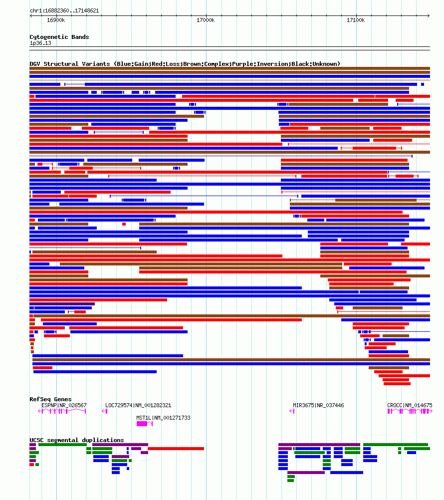Variant DetailsVariant: essv94915 | Internal ID | 12615216 | | Landmark | | | Location Information | | | Cytoband | 1p36.13 | | Allele length | | Assembly | Allele length | | hg38 | 266262 | | hg19 | 266262 | | hg18 | 266262 | | hg17 | 266262 |