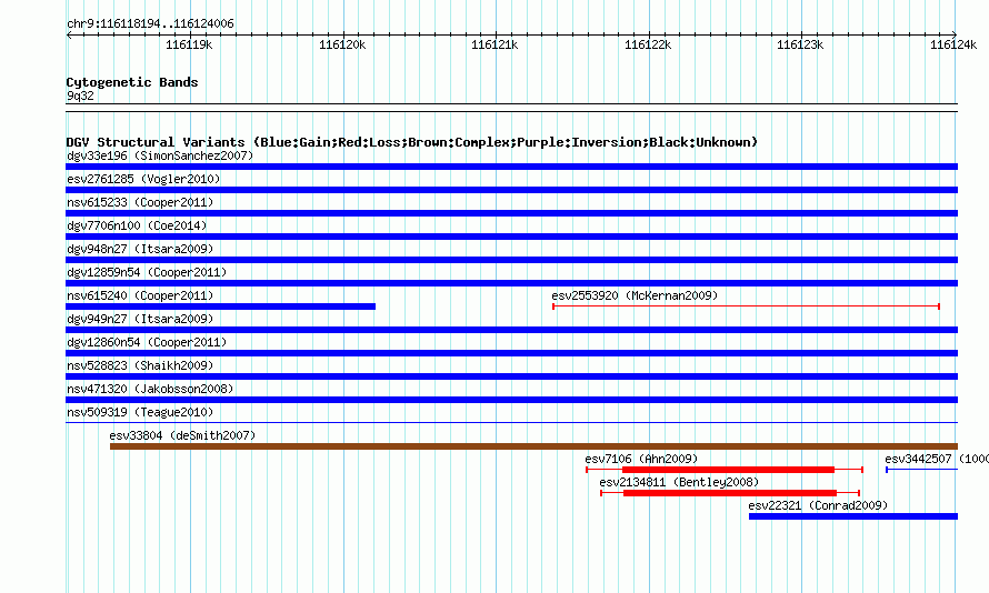 Outerchr9:116118194..116124006hg18UCSC Ensembl