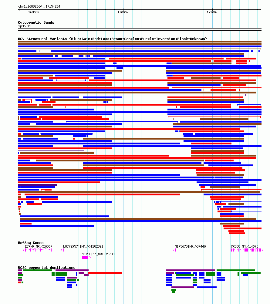 Variant DetailsVariant: essv95128 | Internal ID | 12609807 | | Landmark | | | Location Information | | | Cytoband | 1p36.13 | | Allele length | | Assembly | Allele length | | hg38 | 271875 | | hg19 | 271875 | | hg18 | 271875 | | hg17 | 271875 |