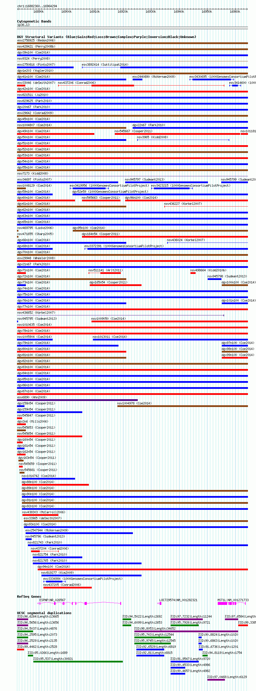 Variant DetailsVariant: essv96504 | Internal ID | 12615686 | | Landmark | | | Location Information | | | Cytoband | 1p36.13 | | Allele length | | Assembly | Allele length | | hg38 | 81935 | | hg19 | 81935 | | hg18 | 81935 | | hg17 | 81935 |